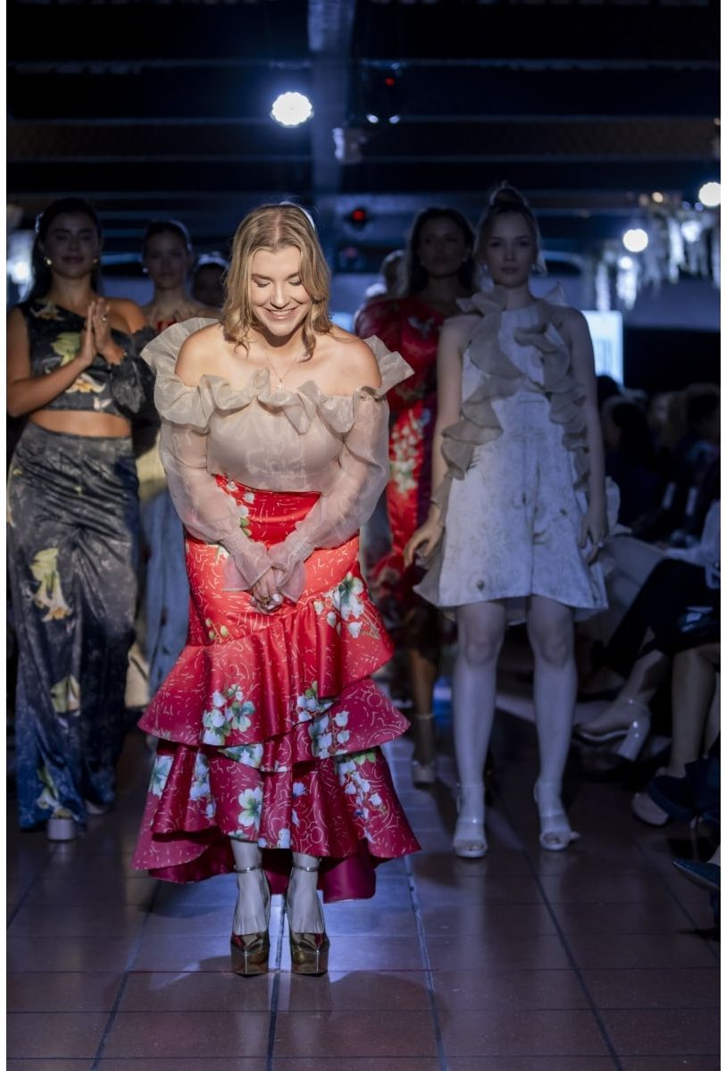 Falda Auristela de Carmina Romero: diseño femenino y confección de alta calidad.